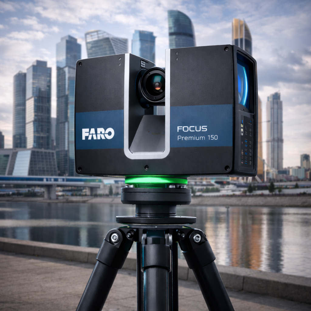 Faro Focus S 150 — профессиональный лазерный 3D-сканер, предназначенный для высокоточной съёмки объектов на средних и больших дистанциях. Устройство подходит для использования как в помещениях, так и на открытых площадках, обеспечивая стабильную и точную работу.